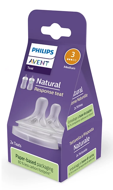 A tetina Natural Response adapta-se ao ritmo natural do bebé, o que facilita a combinação entre a amamentação e a alimentação com o biberão. A tetina tem uma abertura inovadora que só liberta leite quando o bebé succiona ativamente. Assim, quando o bebé para para engolir e respirar, o fluxo de leite é interrompido. O seu bebé irá desfrutar de uma alimentação mais confortável, que o deixa satisfeito.