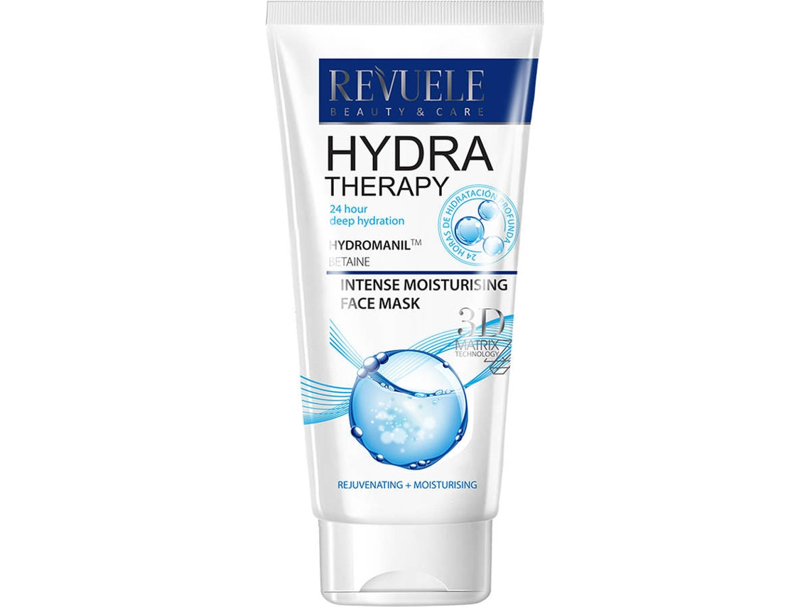A Revuele Hydra Therapy Intense Moisturising Face Mask é uma máscara hidratante intensiva desenvolvida para restaurar a hidratação, reduzir a sensação de repuxamento e fadiga e acalmar a pele, ajudando a prevenir descamação e vermelhidão. Ideal para devolver conforto e frescura à pele desidratada e cansada.