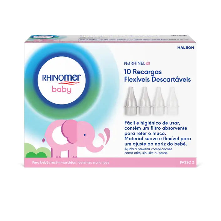 Rhinomer Baby Narhinel Soft é um dispositivo inovador, estudado para permitir a eliminação das secreções nasais do bebé. Recomenda-se a aspiração das secreções tantas vezes quantas as necessárias, desde que o bebé apresente o nariz obstruído e que a aspiração seja feita com a prévia aplicação de água do mar ou soro fisiológico para amolecer as mucosidades e facilitar a sua aspiração.