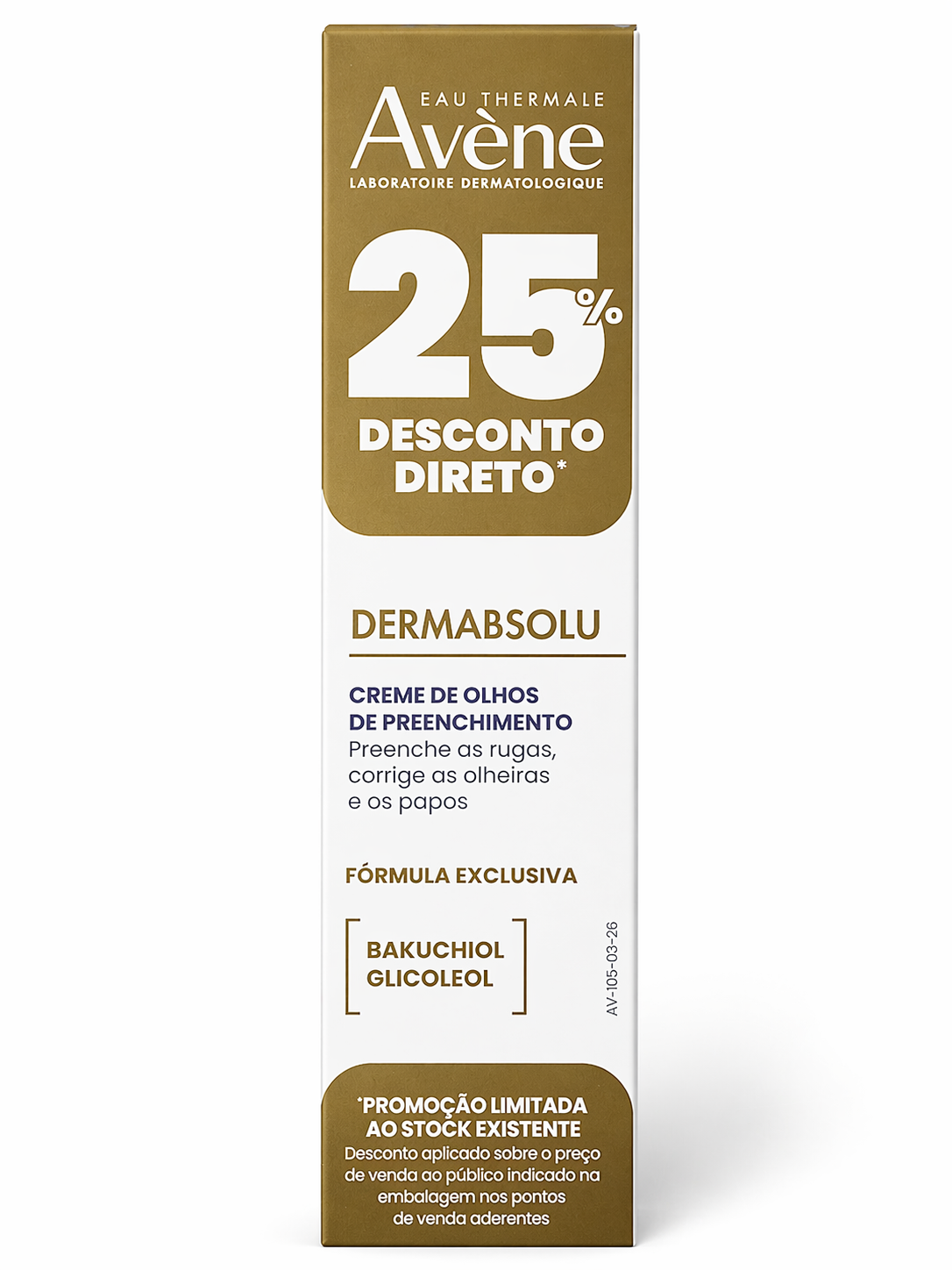 O Avène DermAbsolu Olhos é um cuidado específico para o contorno dos olhos, formulado para atuar sobre os principais sinais de envelhecimento nesta zona delicada: perda de firmeza, secura e tom irregular. A sua fórmula integra um trio de ingredientes reestruturantes, incluindo Bakuchiol a 1%, reconhecido pela sua eficácia comparável ao retinol, com melhor tolerância para pele sensível.