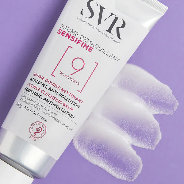 O SVR Sensifine Bálsamo Desmaquilhante transforma a limpeza num verdadeiro momento de cuidado. Com apenas 9 ingredientes e uma textura bálsamo que se funde em óleo, remove eficazmente todas as impurezas e maquilhagem, inclusive à prova de água, sem agredir a pele. A sua fragrância delicada de coco envolve o rosto, deixando a pele limpa, hidratada e apaziguada. Ideal até para a pele mais sensível e reativa.