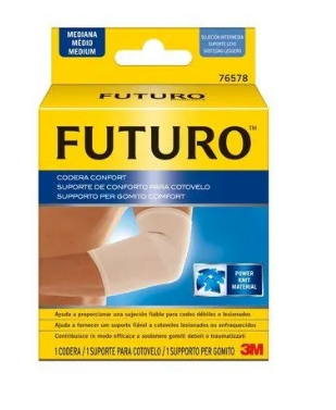 Futuro Suporte Elástico Comfort Lift Cotovelo possui um formato em manga fina que acompanha a forma natural do braço e fica discreto sob a roupa. Concebido para proporcionar um conforto durante todo o dia com materiais suaves, leves e permeáveis ao ar. Fácil de colocar e de retirar. Pode ser utilizado no cotovelo esquerdo e direito. Tamanho: S.