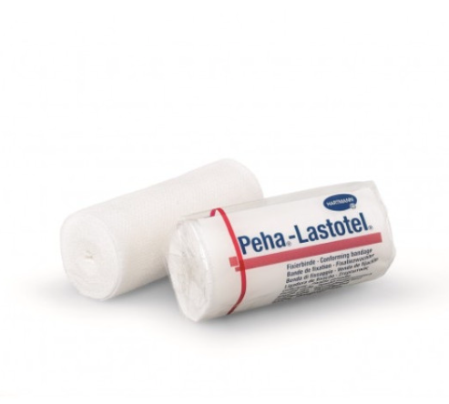 Ligadura elástica de contenção, indicada para a retenção de todo o tipo de pensos, particularmente utilizada em articulações e partes cónicas ou redondas do corpo.
