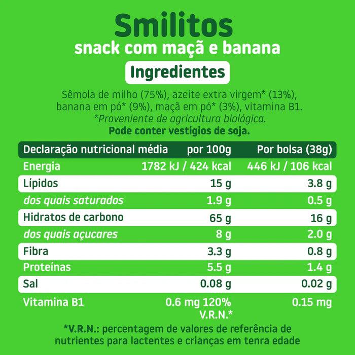 Smileat Snack Smilitos Milho com Maçã e Banana Biológico 25g