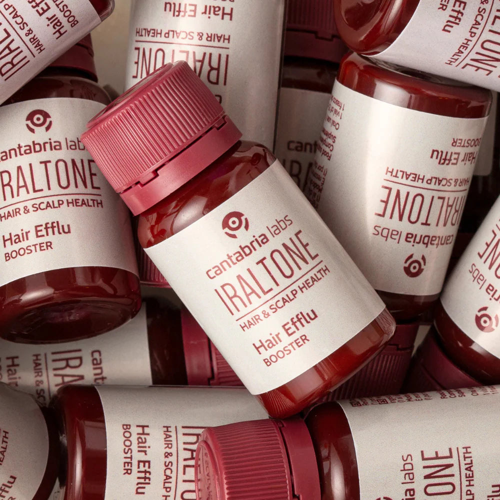 ¡Fuerza y vitalidad para tu cabello! Iraltone Hair Effluent Booster es un complemento alimenticio en ampollas bebibles (30 x 15 ml), a base de extractos de plantas, vitaminas, minerales y aminoácidos, indicado para la caída del cabello estacional.