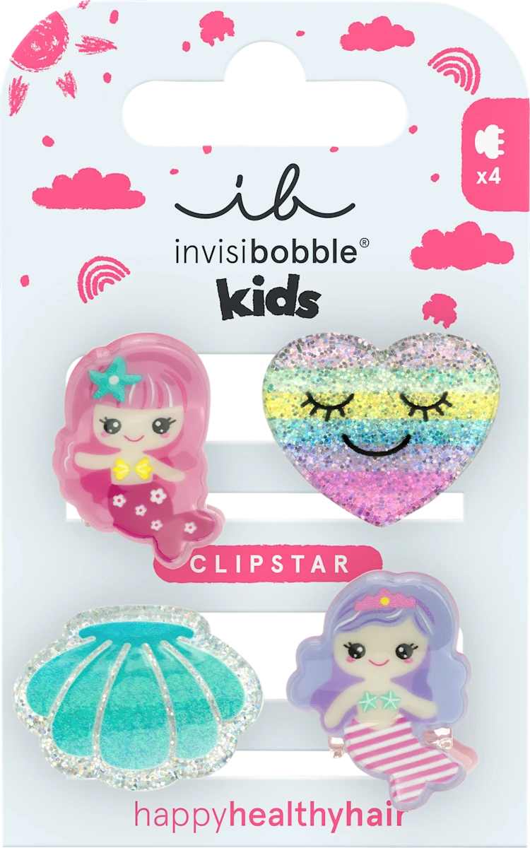 ¡Peina tu cabello con estilo y cuidado! Las pinzas Invisibobble Clipstar Mermaid Dreams son brillantes, perfectas para darle un toque divertido al look de tu pequeña y sacarle una sonrisa.