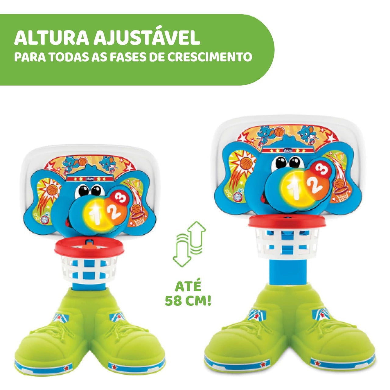 - ALTURA ADJUSTÁVEL: O aro da Chicco Basket League tem duas alturas facilmente ajustáveis até 58 cm, a fim de se ajustar ao crescimento e desenvolvimento das capacidades da criança