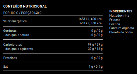 Drink Mix 160 é uma bebida com tecnologia de hidrogel aplicada que contém alta concentração de maltodextrina e frutose. Uma saqueta contém 40g de carboidratos.